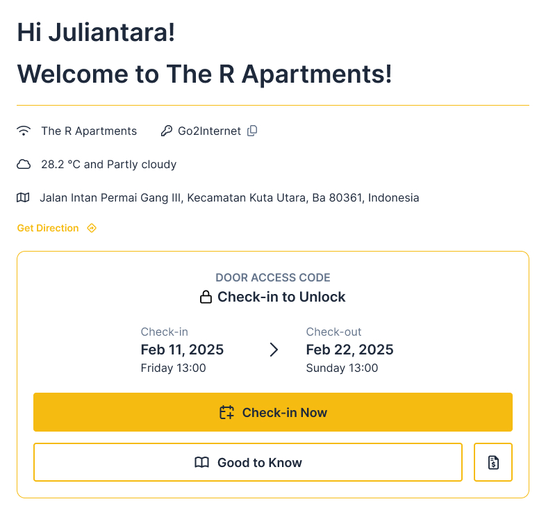 Check-in times, access codes, WiFi, rules & local tips