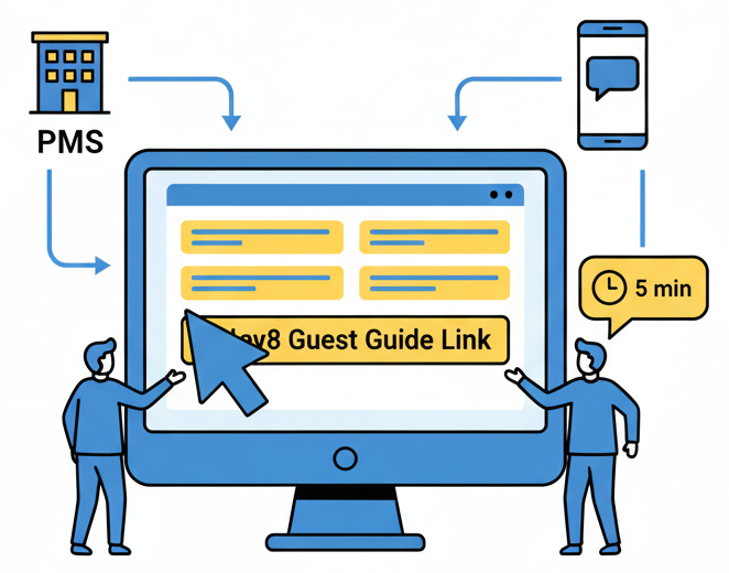 Update your PMS’s automated guest messages to include Elev8 links, such as the Guest Guide or smart check-in info. We’ll show you exactly where and how to do it – it takes 5 minutes.